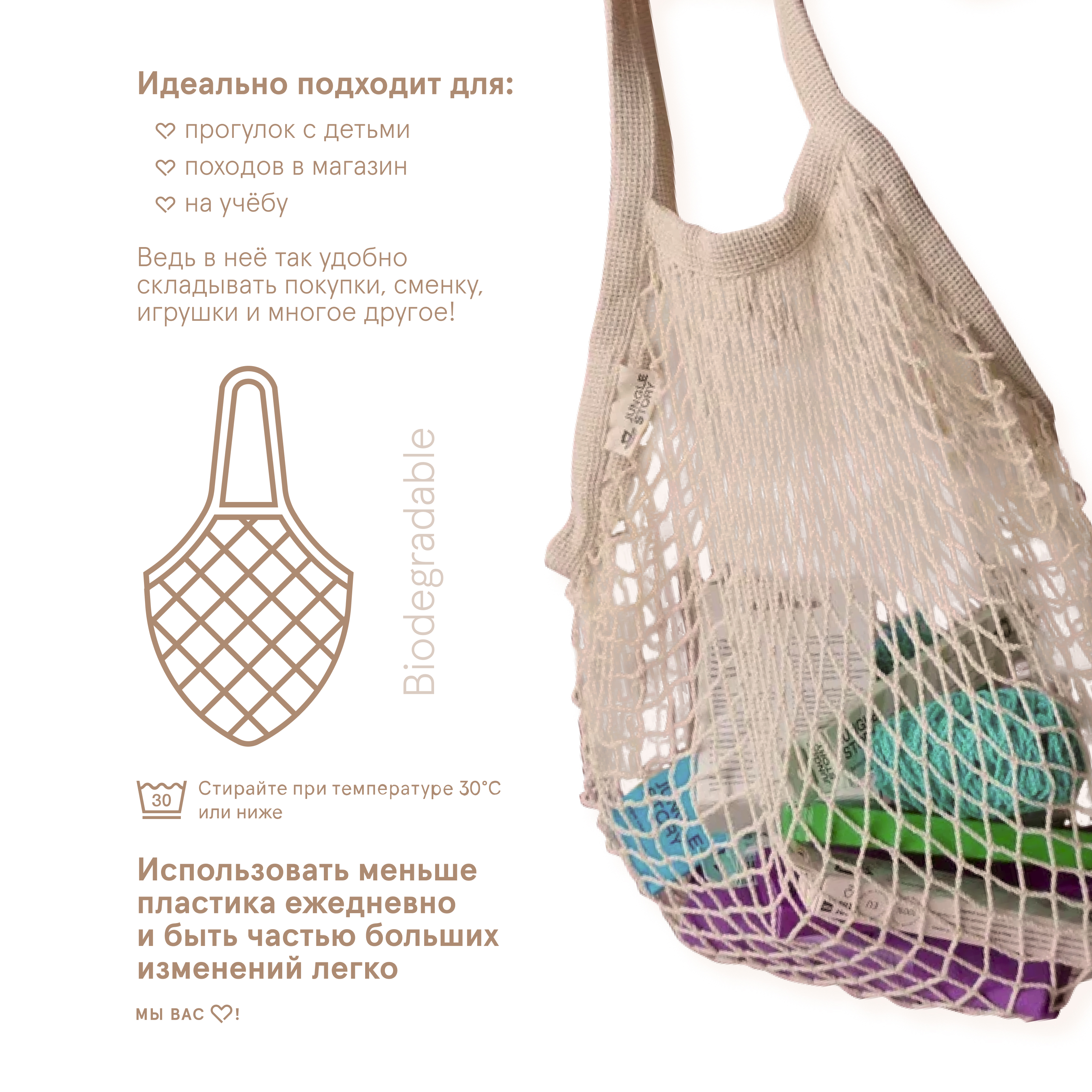 Плетеную хозяйственную сумку можно использовать для хранения продуктов, овощей и фруктов. Благодаря форме сетки, сумку легко промывать и очищать, что делает ее удобной в использовании. Кроме того, сумка изготовлена из хлопка, который не впитывает запахи, так что вы можете быть уверены, что ваша еда будет защищена от нежелательных запахов.