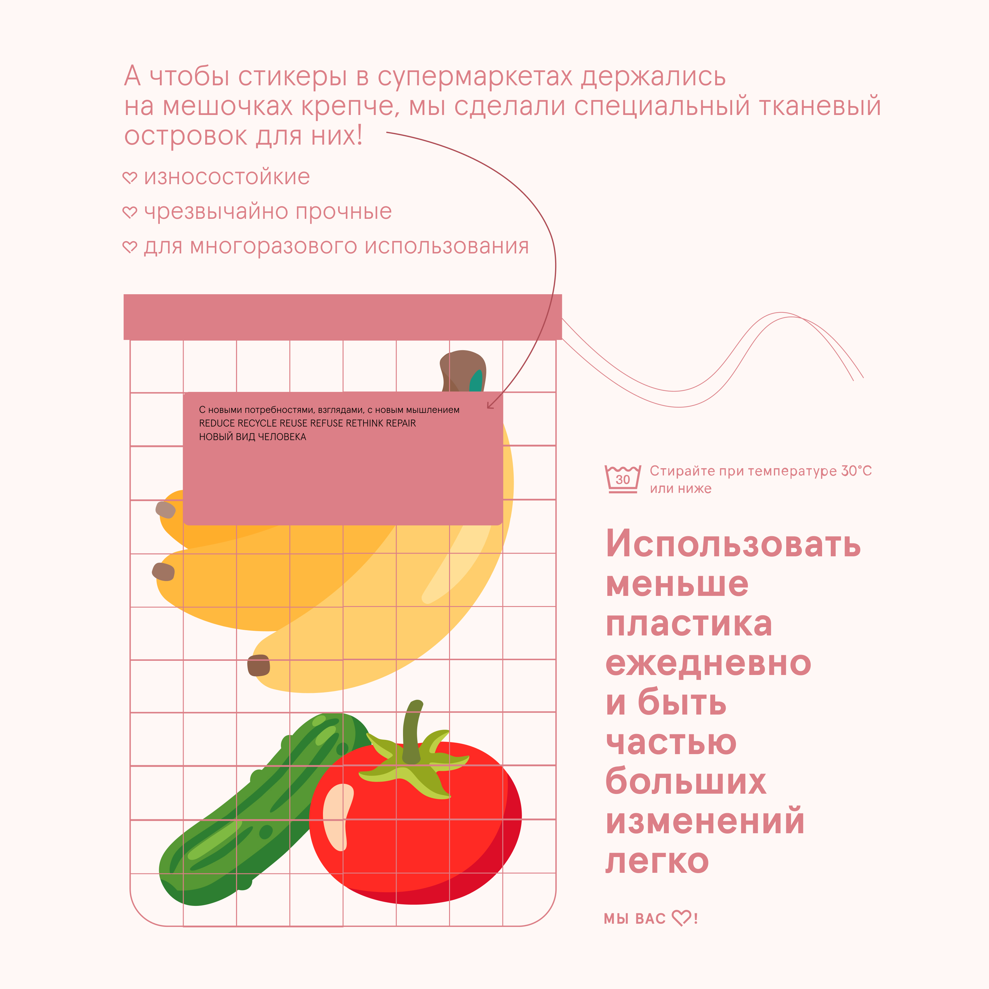 Хлопковые мешочки еще пригодятся для покупки фруктов и овощей в супермаркете. Складывайте в них весовые продукты, взвешивайте их, приклеивайте стикер и идите на кассу. После этого, вы можете использовать мешочки для хранения купленных продуктов как в тепле, так и в холодильнике.