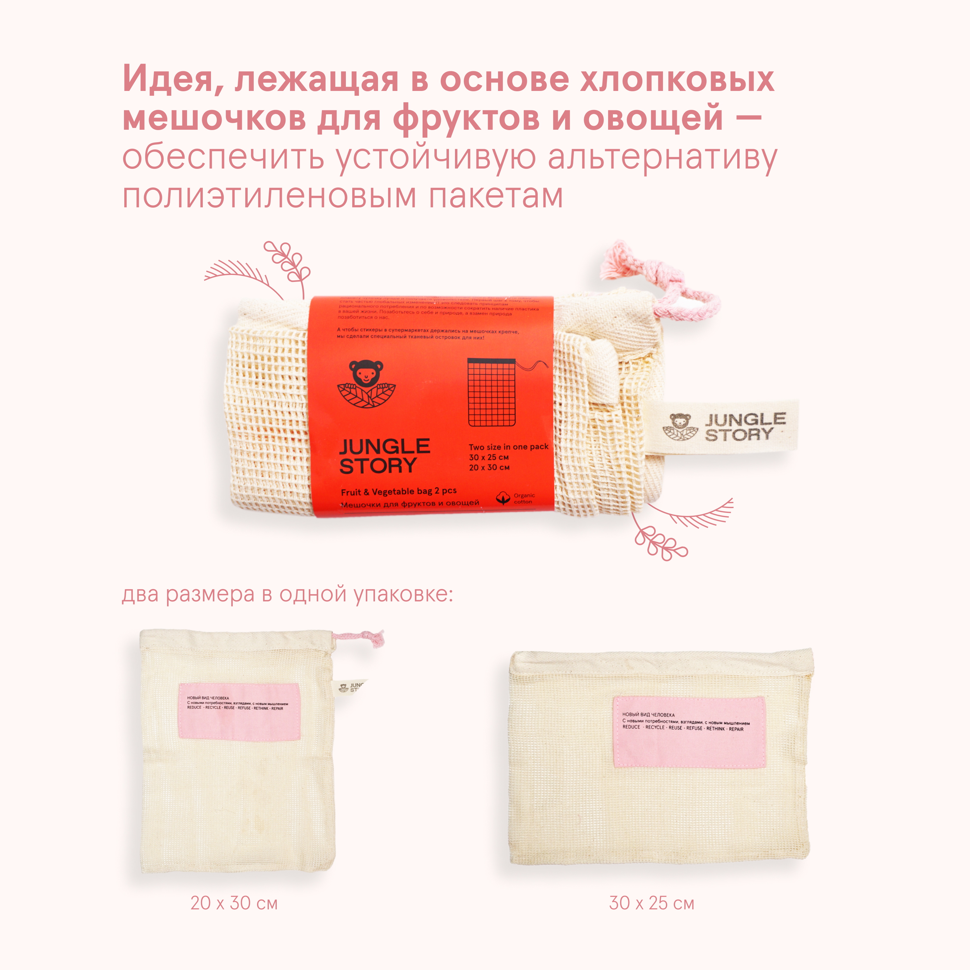 Мешочки, cетка со шнурком из хлопка хранения и взвешивания фруктов и овощей 2 шт в упаковке / размер 30 x 25 см и 20 x 30 см
