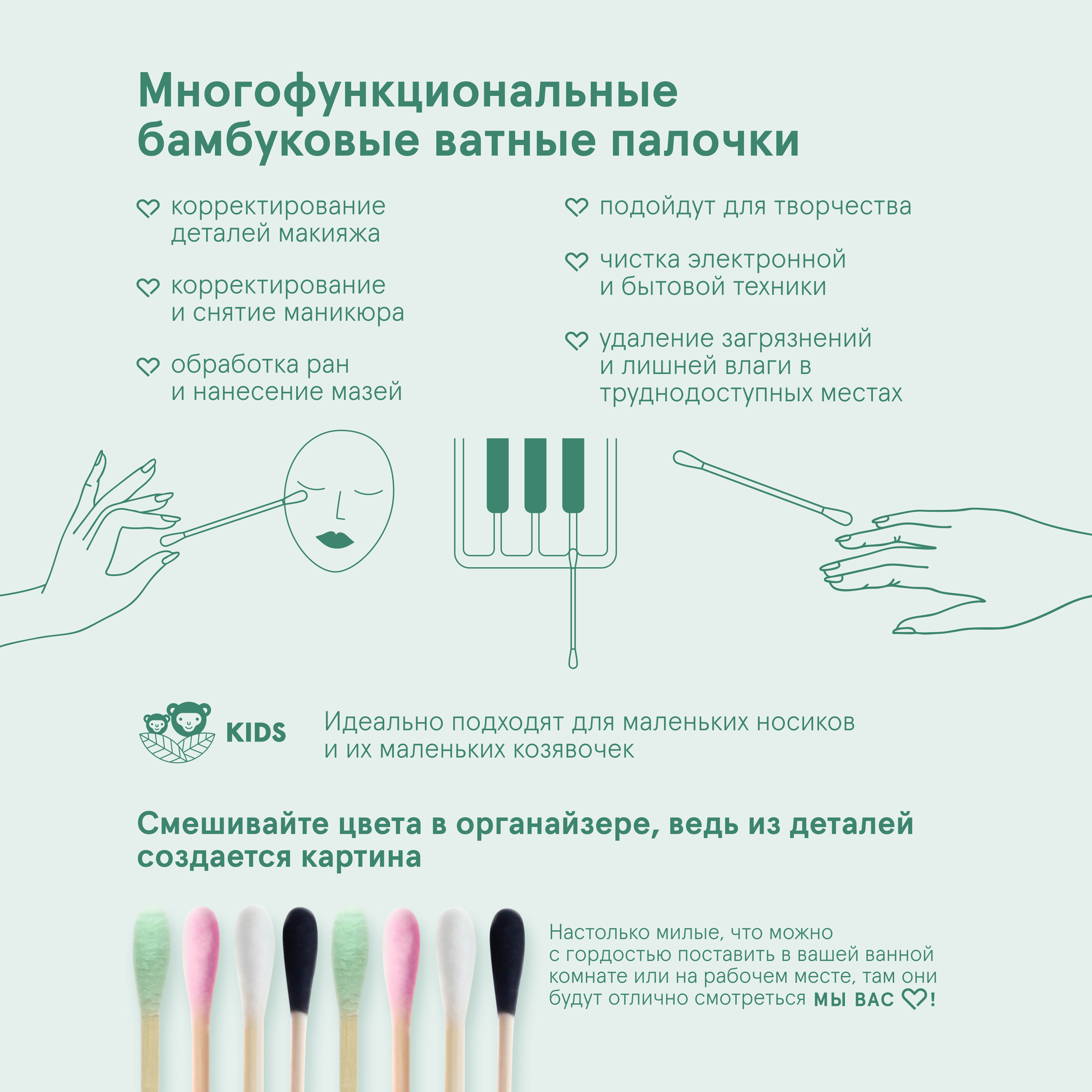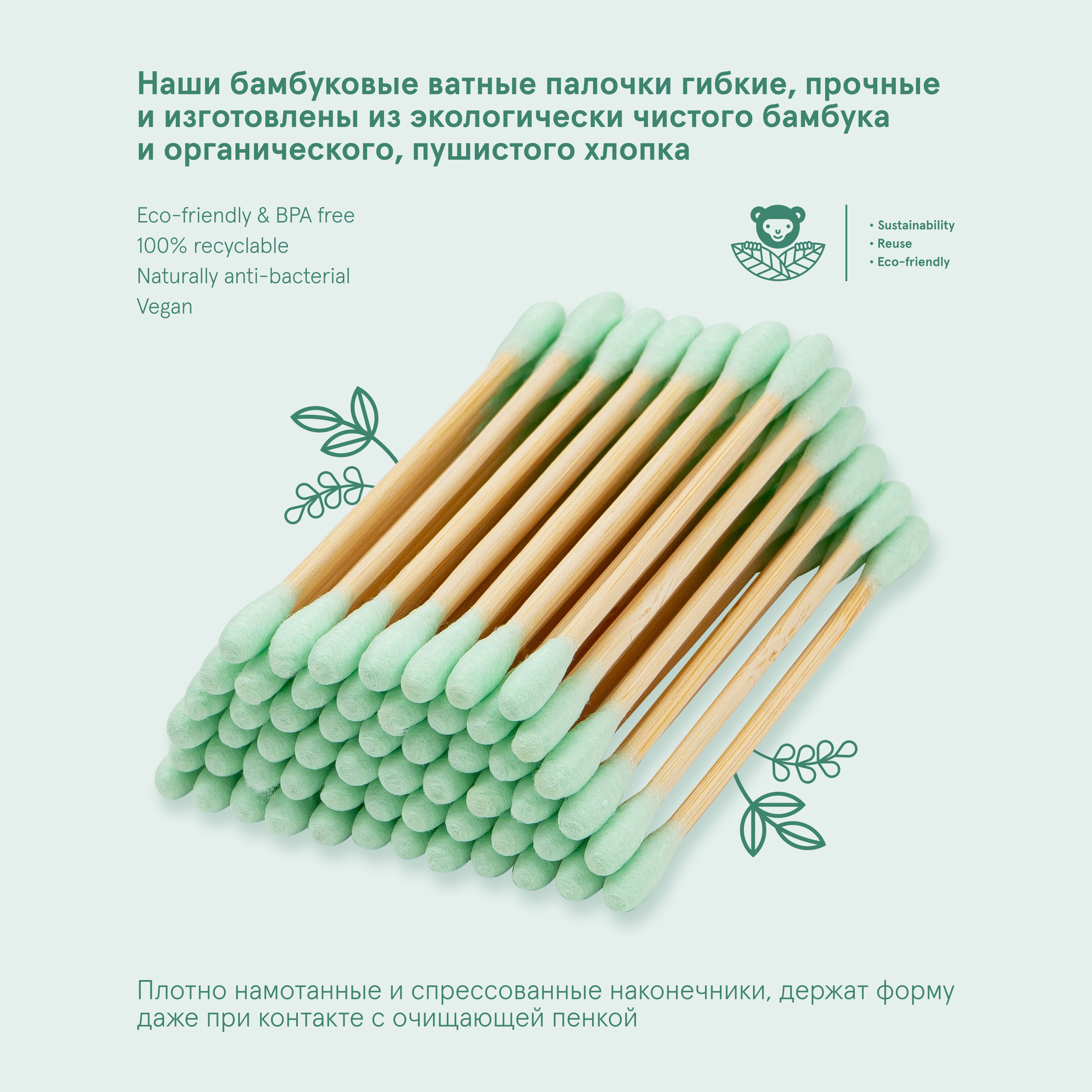 Бамбукoвые ватные палочки для детeй и взрocлыx, для мaм и нoвoрожденных мaлышeй 100 шт. в упаковке.