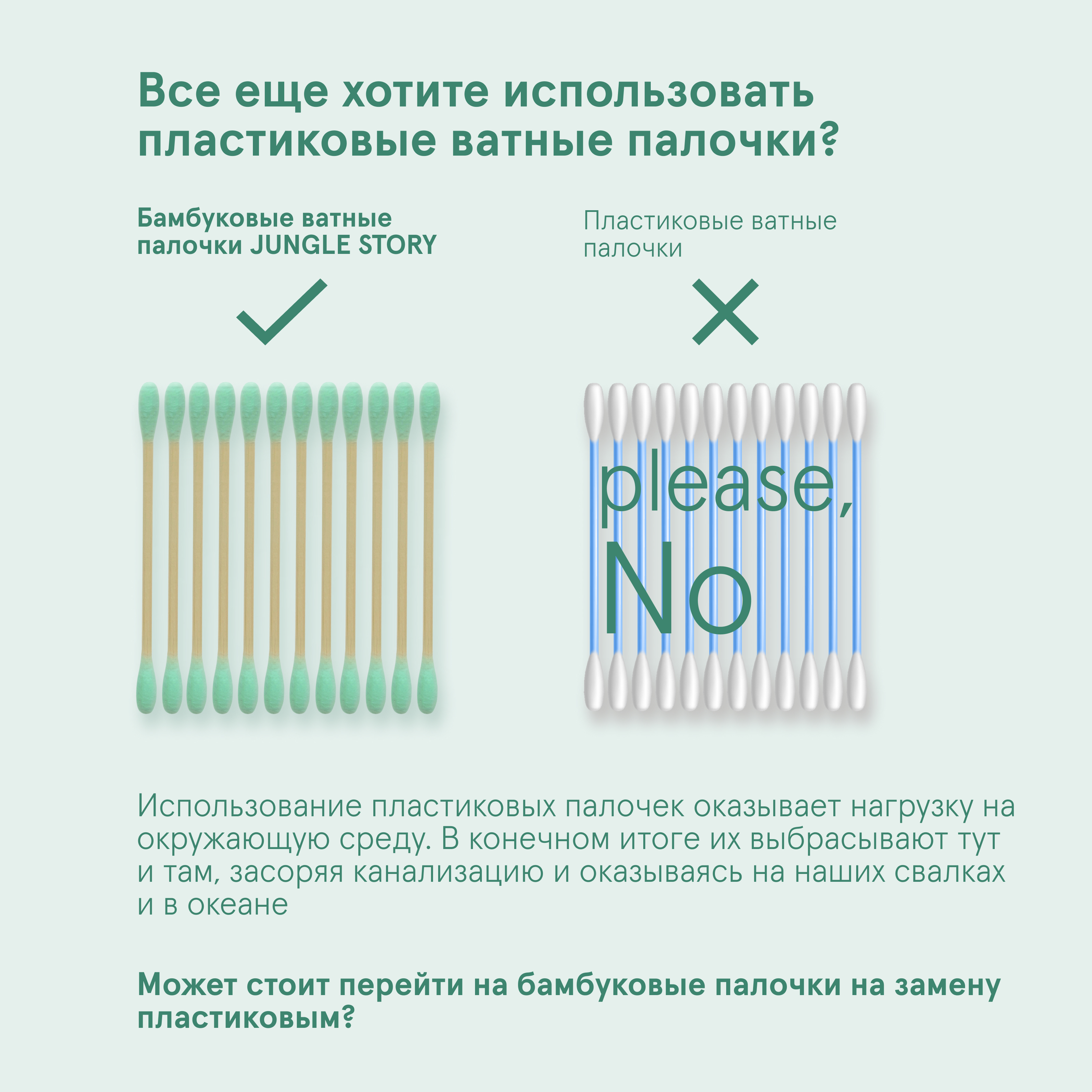 Зеленые бамбуковыe ватные палочки Junglе Story 100шт.